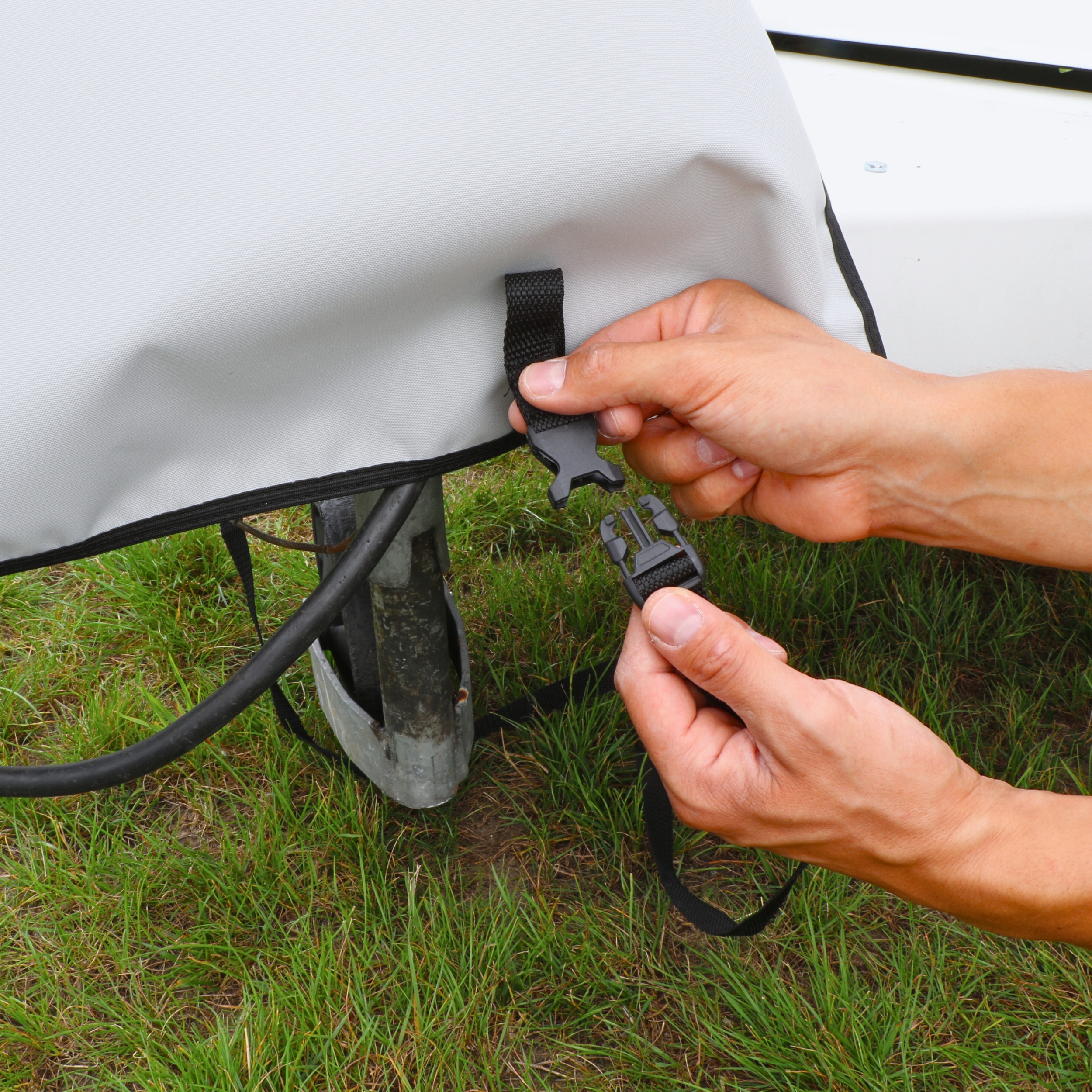 Dzięki praktycznemu pasowi stabilizującemu masz pewność, że pokrowiec pozostanie na swoim miejscu nawet przy silnym wietrze – bez poprawek i nerwów.