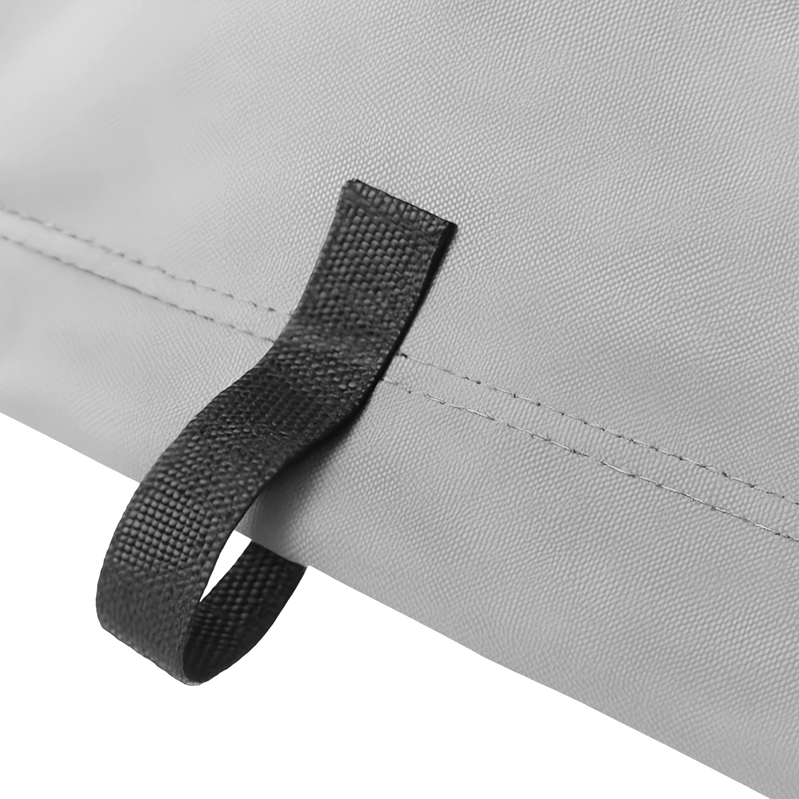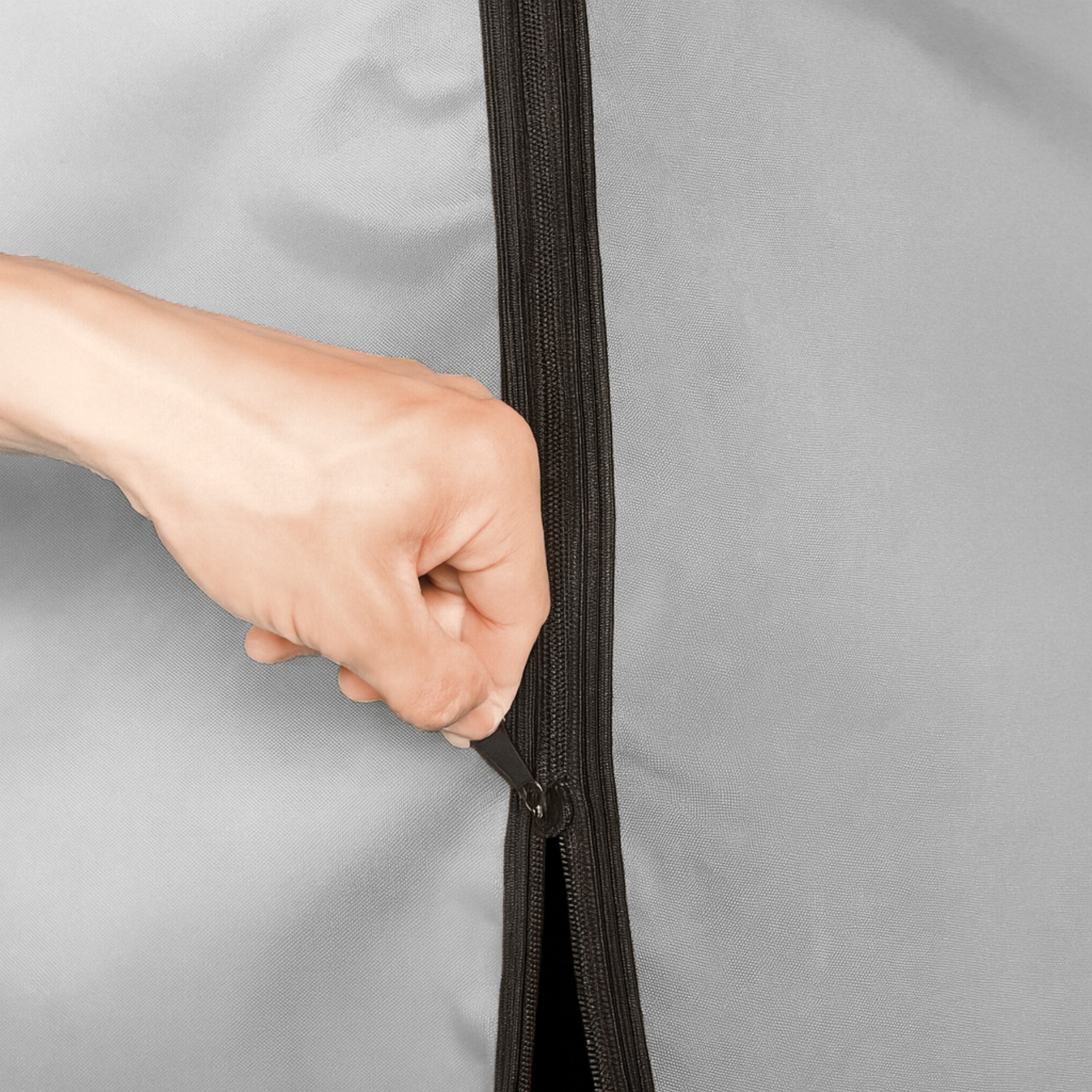 Pokrowiec uszyto z tkaniny o gramaturze 270 g/m² – wytrzymałej i odpornej na uszkodzenia. Nie rozciąga się, nie przeciera i nie odkształca się pod wpływem użytkowania na zewnątrz. Nadaje się do ochrony przez cały rok – zarówno latem, jak i zimą.