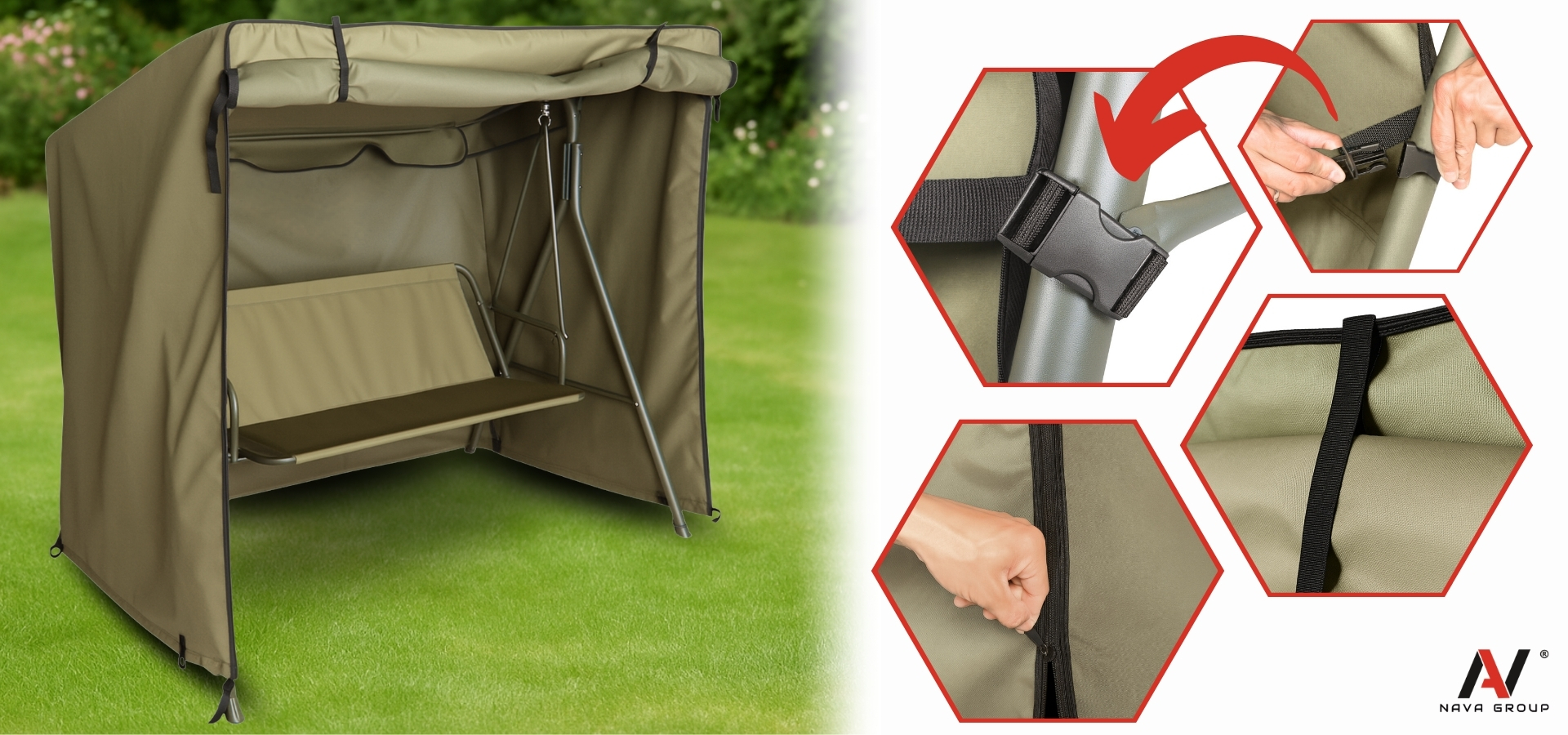 Pokrowiec na huśtawkę ogrodową marki Nava Group to trwała, całoroczna osłona, która skutecznie chroni sprzęt przed deszczem, słońcem, kurzem i zabrudzeniami. Dzięki wytrzymałej tkaninie z filtrem UV, wygodnemu systemowi mocowania oraz solidnym szwom z lamówką, zapewnia nie tylko ochronę, ale też wygodę użytkowania i estetyczny wygląd. Sprawdzi się zarówno w ogrodzie, jak i pod zadaszeniem – wszędzie tam, gdzie huśtawka wymaga zabezpieczenia przez dłuższy czas.