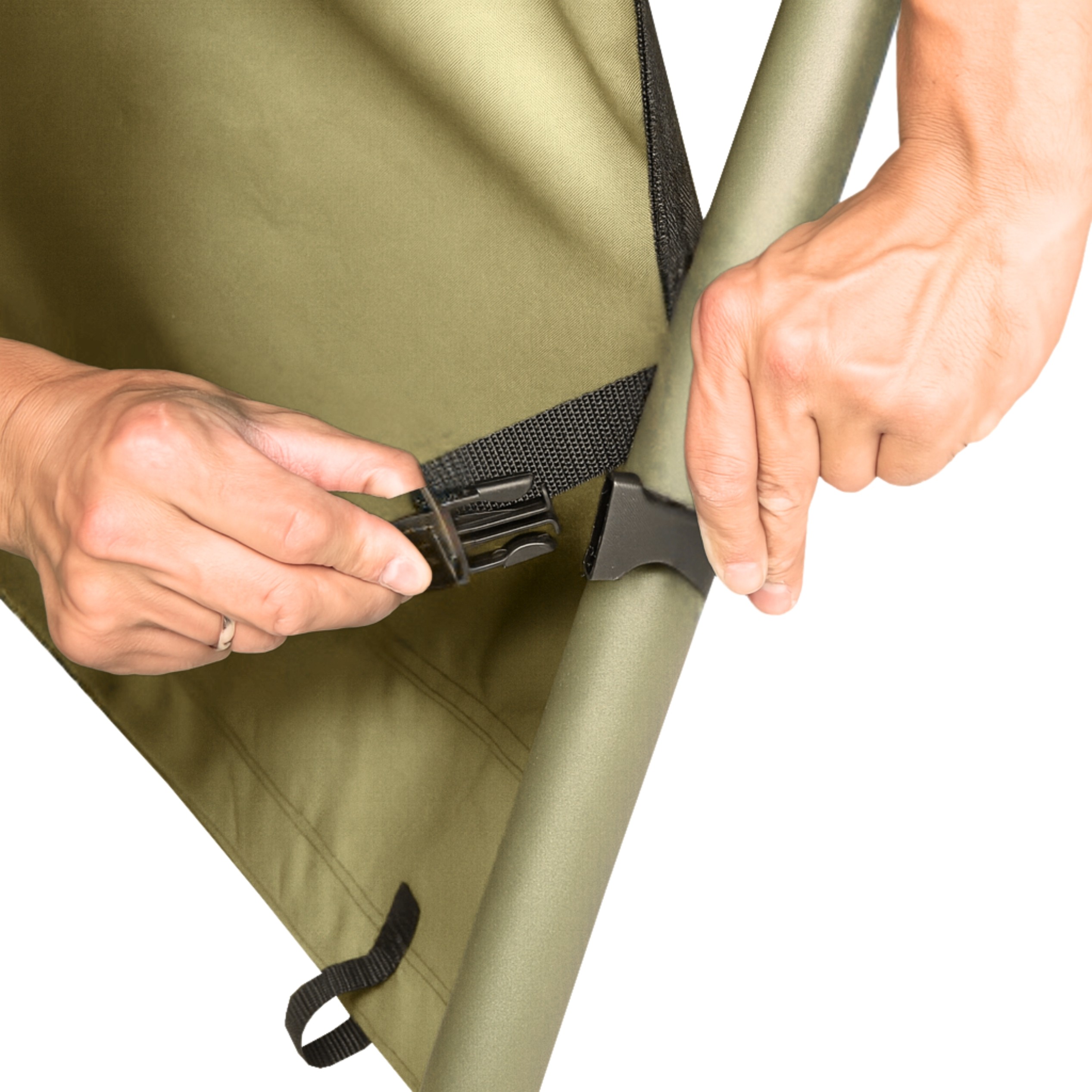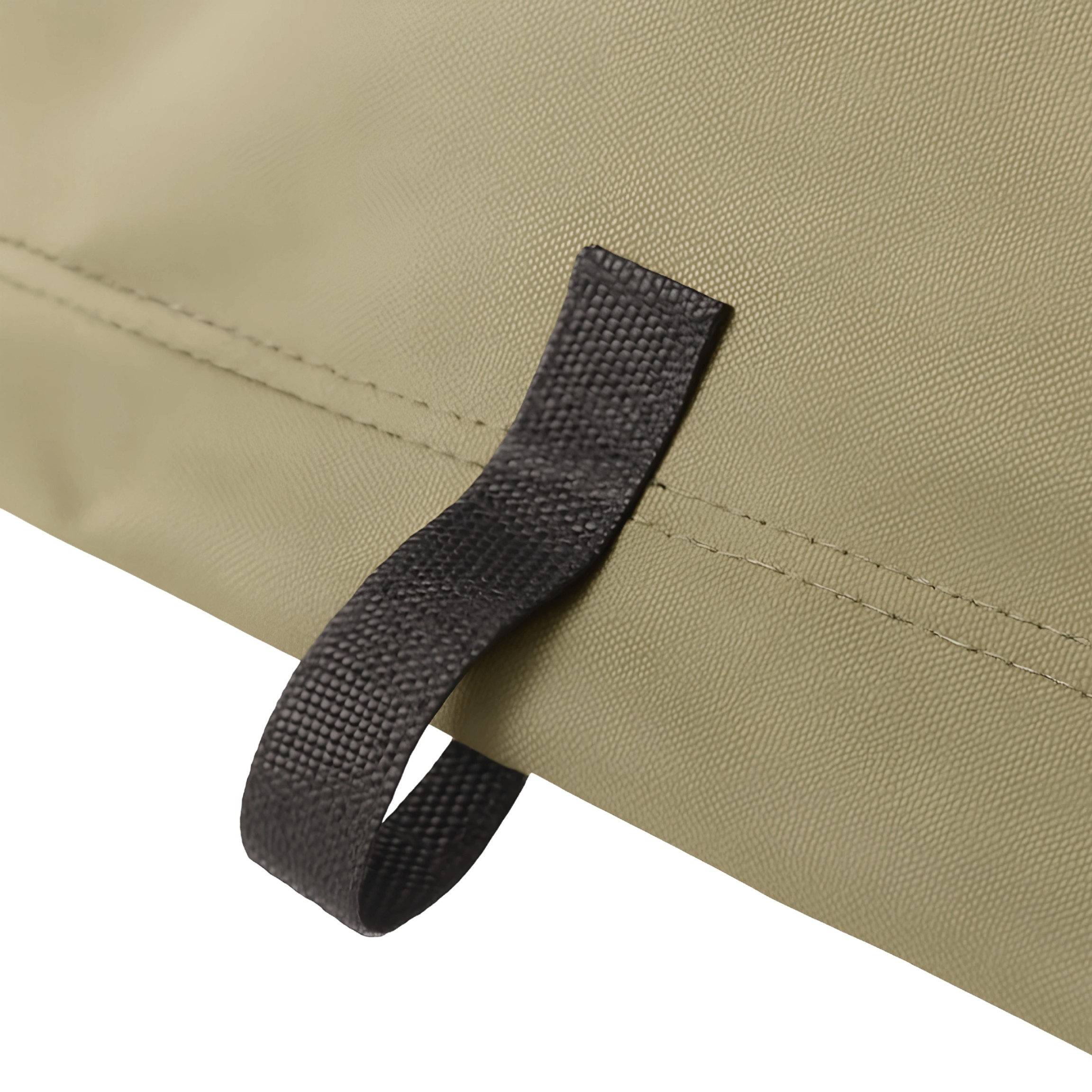 Pokrowiec uszyto z tkaniny o gramaturze 270 g/m² – wytrzymałej i odpornej na uszkodzenia. Nie rozciąga się, nie przeciera i nie odkształca się pod wpływem użytkowania na zewnątrz. Nadaje się do ochrony przez cały rok – zarówno latem, jak i zimą.