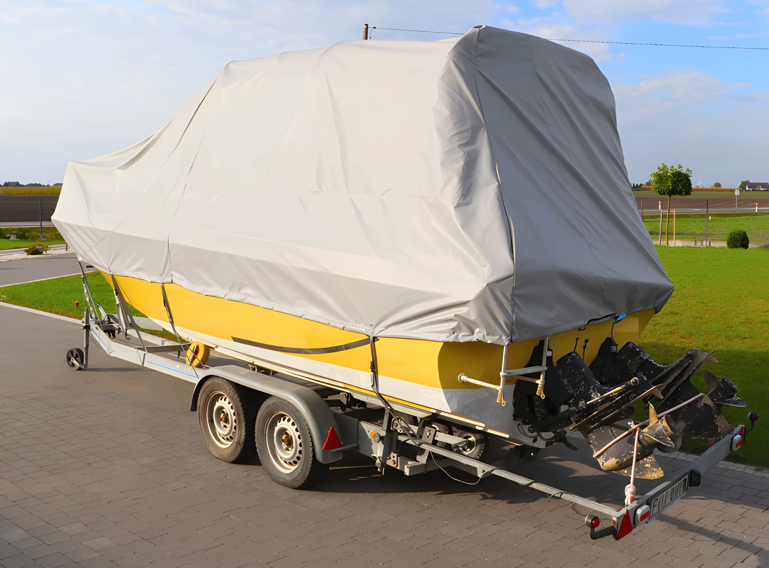 Wysokiej jakości materiały: Wykorzystujemy tkaniny odporne na warunki atmosferyczne oraz blaknięcie koloru, co zapewnia długotrwałą ochronę łodzi zachowując jej estetykę.