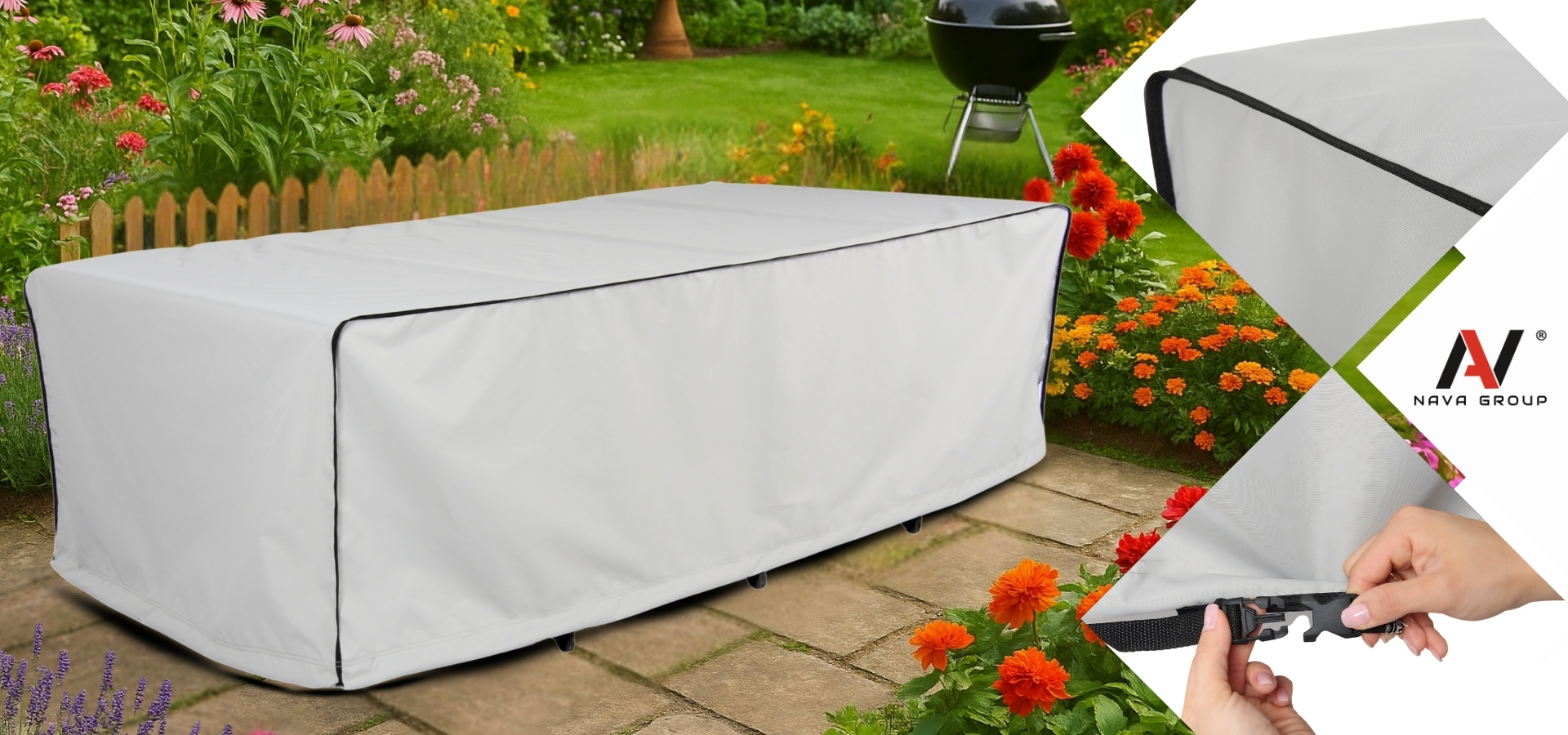 Pokrowiec na meble ogrodowe Nava Group to funkcjonalna, trwała i całoroczna osłona, która skutecznie chroni przed warunkami atmosferycznymi, zabrudzeniami i uszkodzeniami mechanicznymi. Sprawdzi się na tarasie, w ogrodzie, na balkonie oraz podczas przechowywania w pomieszczeniach. Dzięki wodoodpornej tkaninie, filtrowi UV, solidnym szwom i możliwości dopasowania do indywidualnych potrzeb, to praktyczne rozwiązanie dla każdego, kto chce zachować meble w dobrym stanie na dłużej.