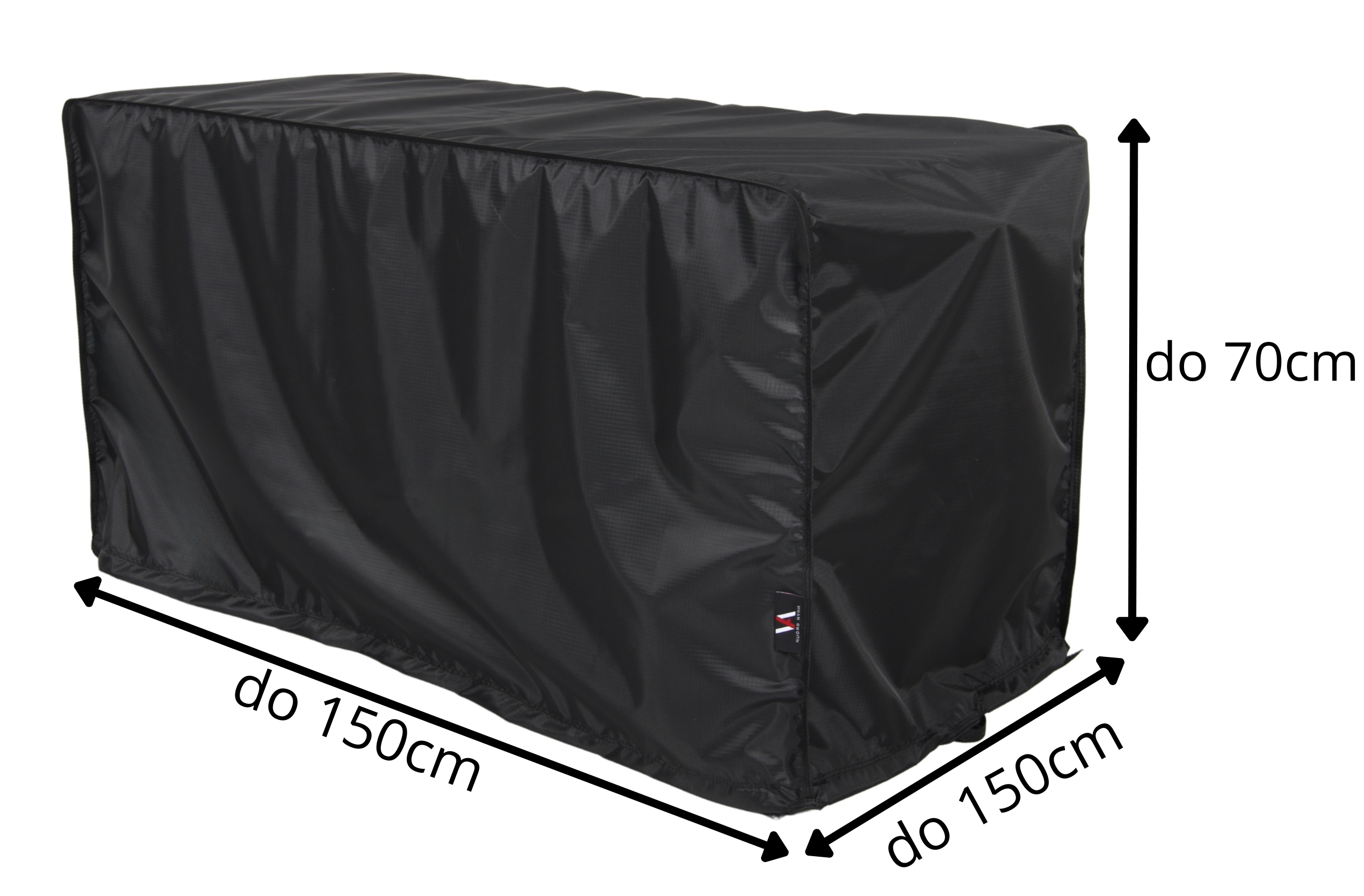 Pokrowiec uszyto z tkaniny o gramaturze 120 g/m² – wytrzymałej i odpornej na uszkodzenia. Nie rozciąga się, nie przeciera i nie odkształca się pod wpływem użytkowania na zewnątrz. Nadaje się do ochrony przez cały rok – zarówno latem, jak i zimą.
