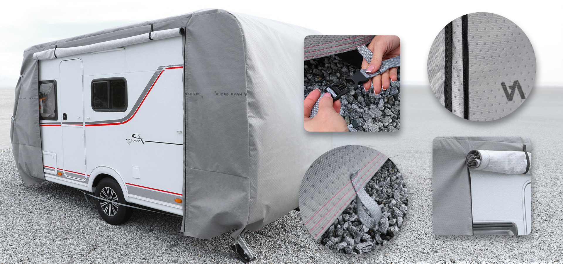Pokrowiec na przyczepę kempingową firmy Nava Group zaprojektowany został do ochrony pojazdu przed szkodliwymi czynnikami zewnętrznymi.