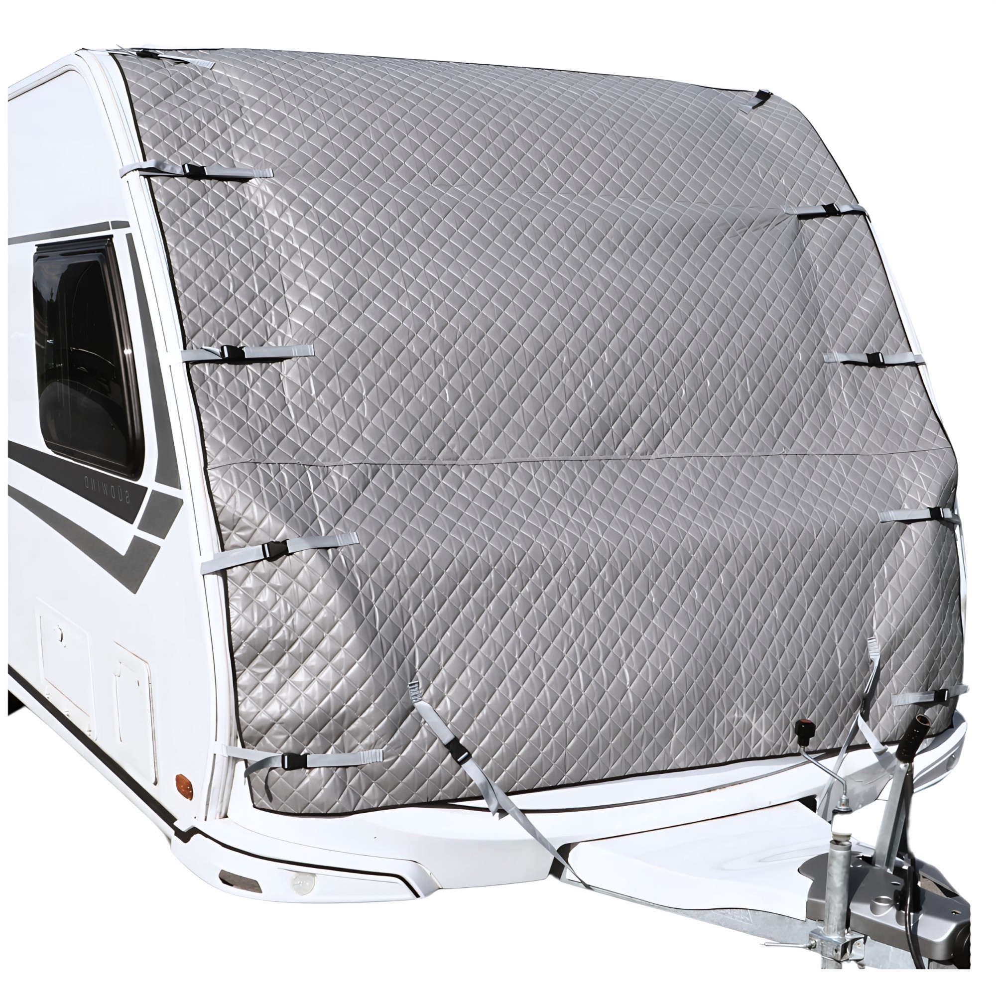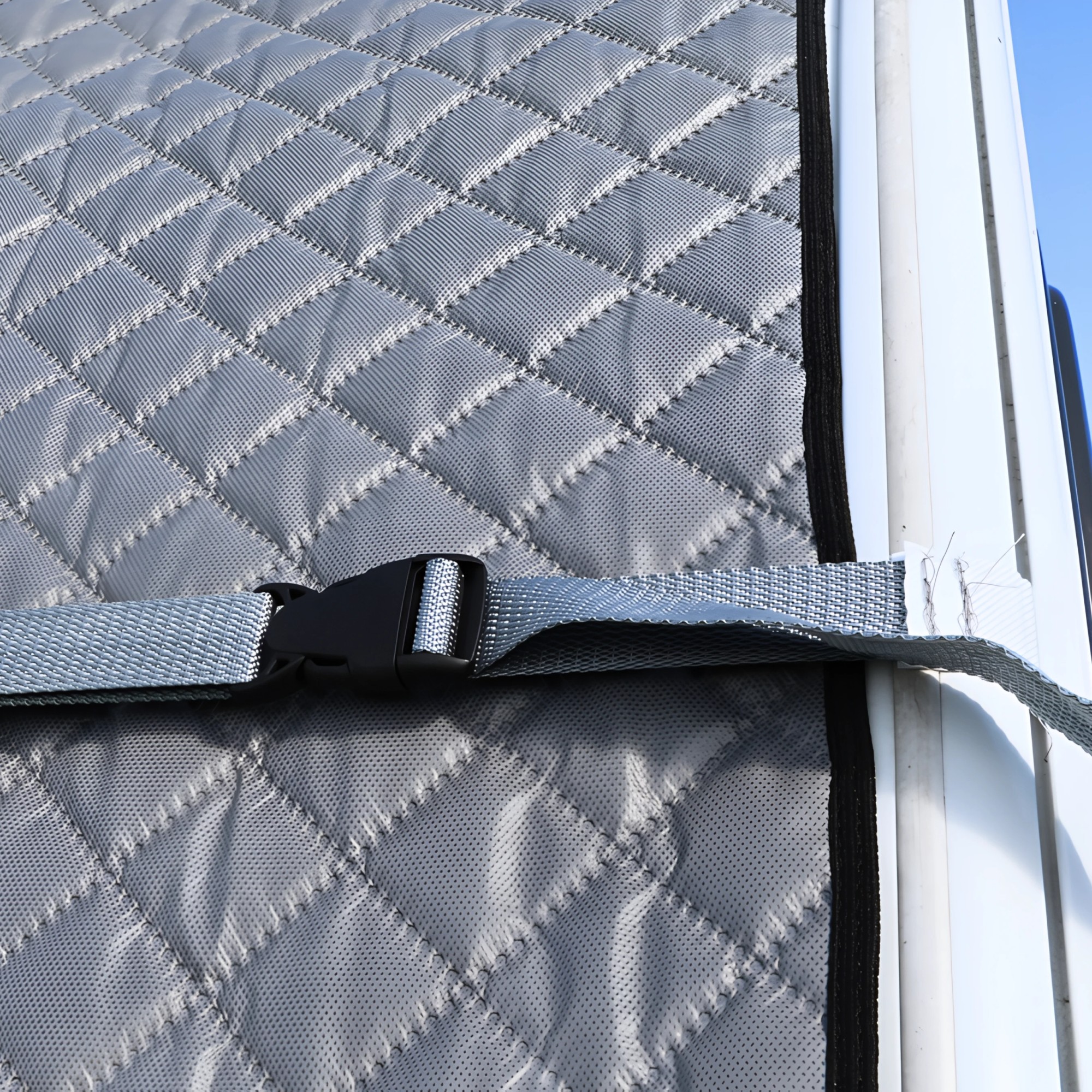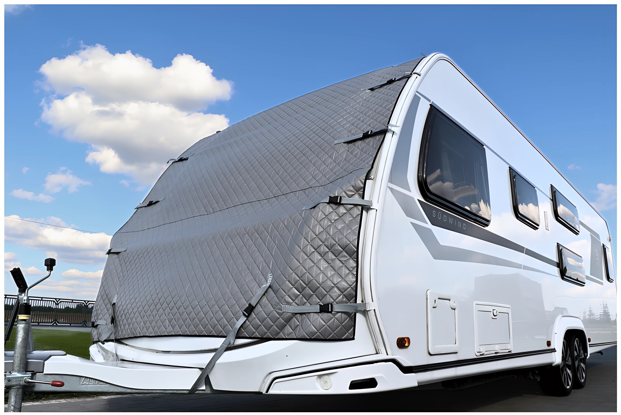 Termoizolacyjna mata na przód przyczepy to sprawdzone rozwiązanie dla użytkowników poszukujących efektywnej ochrony cieplnej i większego komfortu wewnątrz pojazdu kempingowego – niezależnie od sezonu, pogody i lokalizacji. Stworzona z myślą o kempingowych realiach, została zaprojektowana tak, by sprostać zarówno chłodnym porankom, jak i upalnym popołudniom. Dzięki zaawansowanej, pięciowarstwowej strukturze materiału mata efektywnie izoluje wnętrze przyczepy, ograniczając niepożądane straty ciepła zimą oraz przegrzewanie latem.