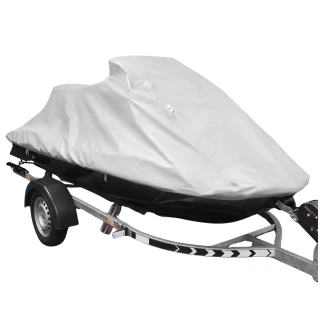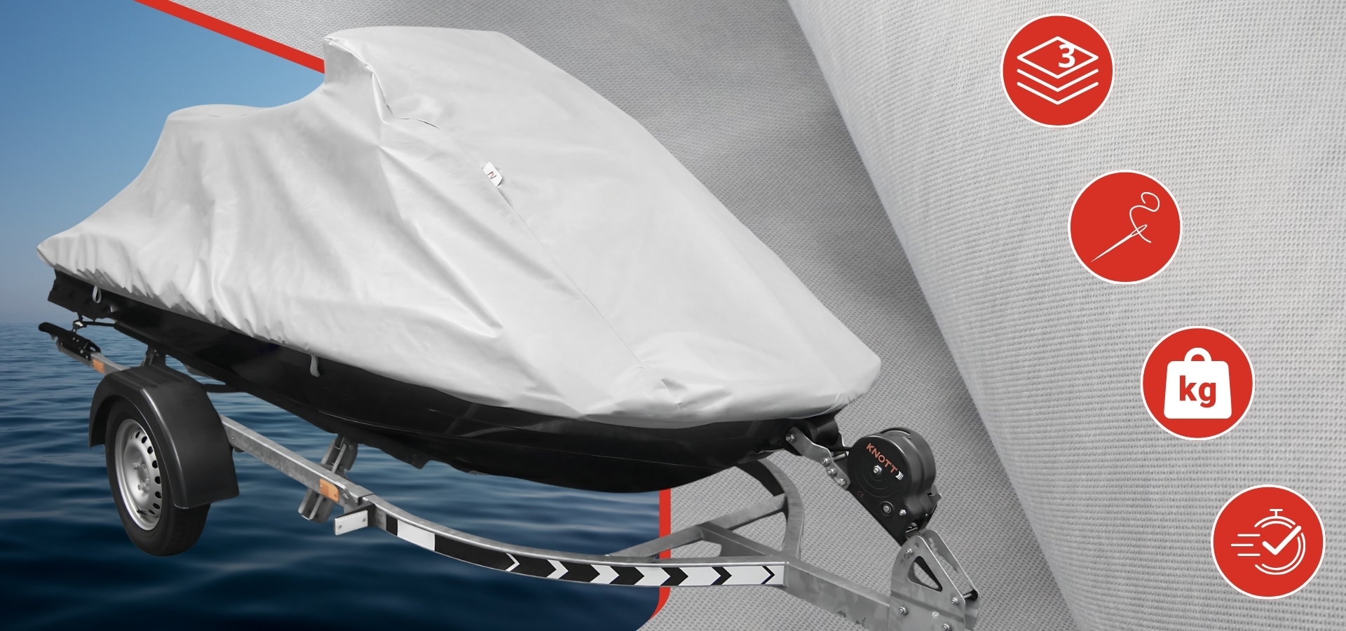 Pokrowiec wykonany jest z wytrzymałego, wodoszczelnego, 3-warstwowego materiału polipropylenowego, który zapewnia skuteczną ochronę przez cały rok. Wyposażony jest w mocny pas ściągający wszyty w dolnej części pokrowca, który umożliwia stabilne dopasowanie do kształtu skutera wodnego.