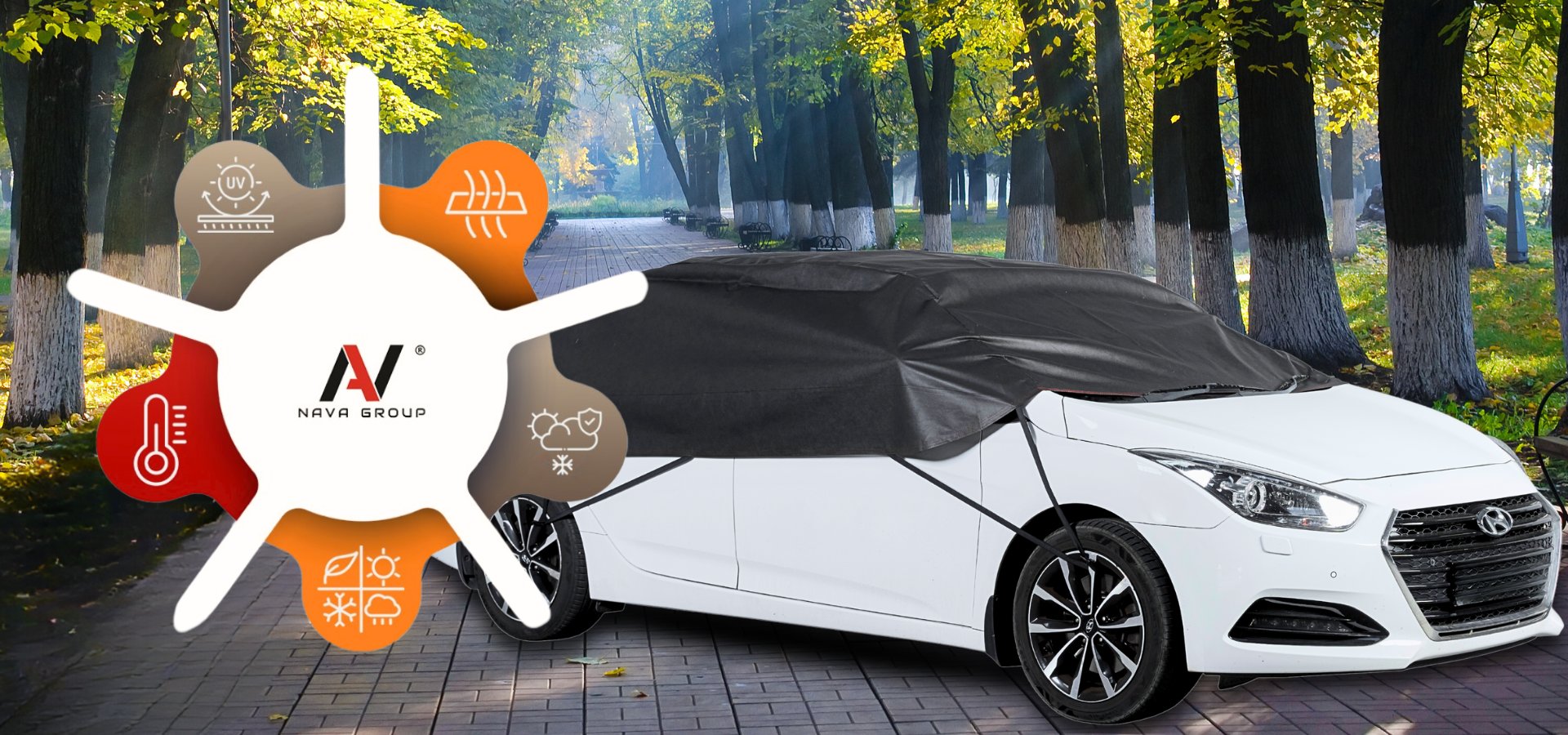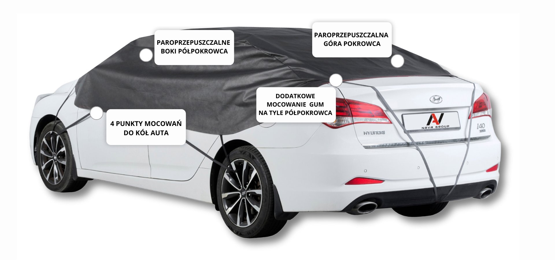 Półpokrowiec na samochód Classic firmy Nava Group zaprojektowany został do ochrony pojazdu przed szkodliwymi czynnikami zewnętrznymi.