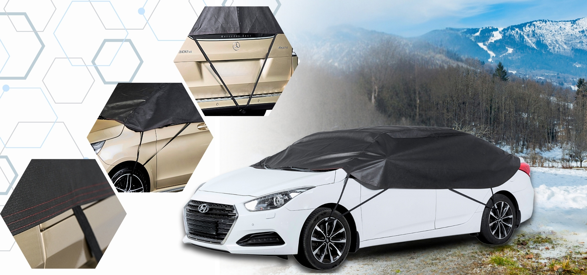 • Półpokrowiec utrudnia widoczność wnętrza samochodu, co może zmniejszać zainteresowanie złodziei i chronić wartościowe przedmioty pozostawione wewnątrz