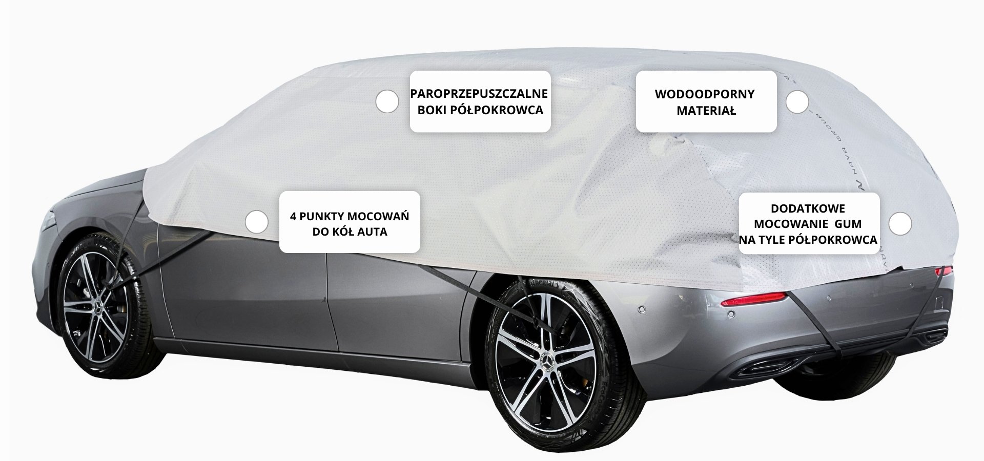 Półpokrowiec posiada dodatkową delikatną warstwę wewnętrzną, która jest bezpieczna dla lakieru i karoserii pojazdu.
